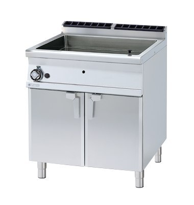 Stała wanna w całości nierdzewna; dobre rozprowadzanie ciepła przez bimetalowe dno o gr. 16 mm; odpływ do podstawy; piezzo zapalanie; płomień pilotujący