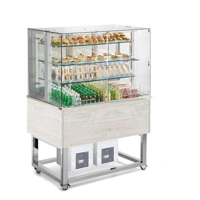 Pojemność 3x GN 1/1 - gł. 200 mm (możliwość regulacji głębokości 24 - 200 mm); możliwość ułożenia produktów na półkach; nierdzewna wanna; chłodzenie dynamiczne; utrzymywanie potraw od +4°C do +8°C; sterowanie elektroniczne; kolor wybierany przy zamówieniu: H - hemlock (kolor standardowy), W - wenge (opcja bez dopłaty) RAL - inny dowolny kolor z palety RAL (opcja dodatkowo płatna); 4 kółka z hamulcami; DF - otwieranie do góry; DS - otwieranie na boki; dostęp od frontu; stała szklana pokrywa; oświetlenie diodowe LED; możliwość montażu w linie wydawcze; Opcja:; możliwość rozszerzenia o boczne półki; gastropojemniki
