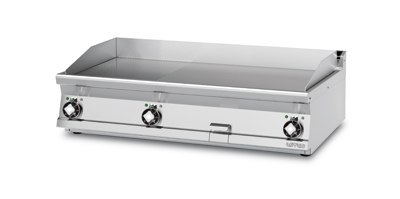 Trzy strefy grzewcze; płyta robocza wykonana ze specjalnej trudnościeralnej stali; odpowiednia grubość płyty roboczej - 15 mm - gwarantuje idealne rozprowadzenie i utrzymywanie temperatury; higiena i komfort pracy; zakres temperatur: 50 - 300°C; kontrolka pracy i grzania; wykonanie nierdzewne; szuflada na tłuszcz; możliwość zestawienia z podstawą otwartą lub szafkową; Modele ETS - płyta SUPERCHROM:; wykończenie SUPERCHROM zapewnia wytrzymałość jeszcze większą niż tradycyjne powłoki chromowane; powierzchnia nieprzywieralna; powłoka SUPERCHROM powoduje mniejszą emisję ciepła, tym samym mniejsze zużycie energii; posiada aprobatę MoCA