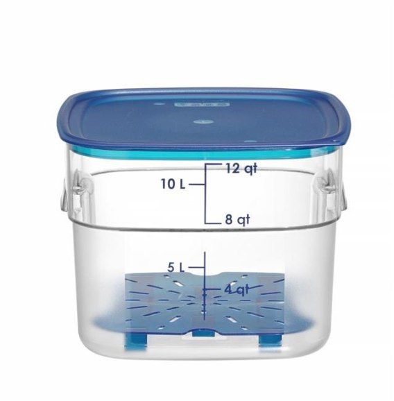 Pojemnik na żywność CamSquares® Fresh Pro firmy Cambro to wielorazowe i przyjazne środowisku rozwiązanie pozwalające na wydłużenie czasu przydatności żywności. Nadaje się do mokrych i suchych produktów. Jest idealny do przechowywania ziół i przypraw, warzyw, mięs, owoców morza czy płynów. Wykonanie z poliwęglanu, materiału odpornego na odbarwianie się, kwasy spożywcze i zapachy, sprawia, że pojemnik jest niezwykle wytrzymały i tym samym doskonale się sprawdzi w profesjonalnych kuchniach. Teksturowana powierzchnia z boku, zaokrąglone rogi i ergonomiczne uchwyty zwiększają wygodę użytkowania. Pokrywki są sprzedawane oddzielne (dostępne w HENDI).