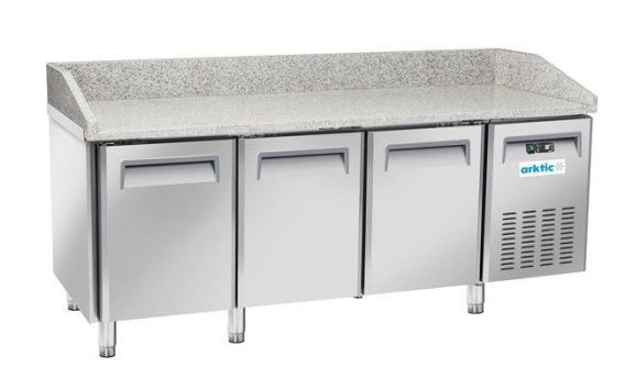 Stół chłodniczy do pizzy 3-drzwiowy Arktic z wytrzymałym granitowym blatem z bocznym i tylnym rantem, zapewniającym solidny i higieniczny obszar roboczy. Chłodzenie dynamiczne, parownik antykorozyjny i automatyczny cykl rozmrażania, zapewniają optymalną wydajność i łatwą konserwację. Dostarczany z 3 regulowanymi półkami.