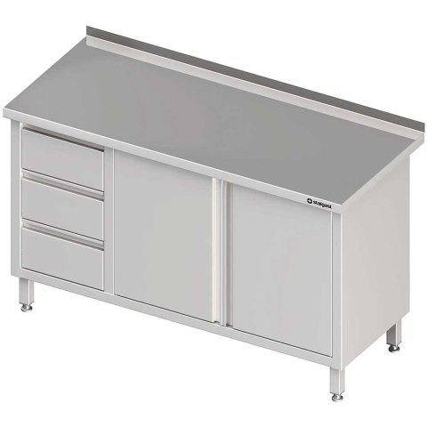• Stół przyścienny z blokiem trzech szuflad (L),drzwi skrzydłowe 1500x600x850 mm