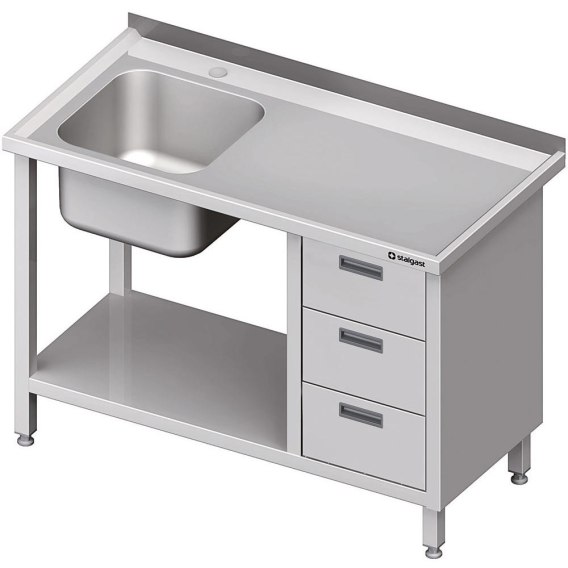 Stół ze zlewem 1-kom.(L), z blokiem trzech szuflad i półką 1900x700x850 mm