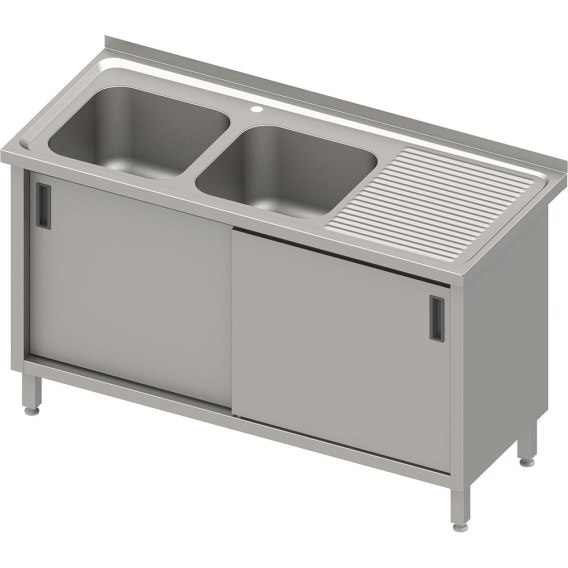 Stół ze zlewem 2-kom.(L),drzwi suwane 1400x700x850 mm, blat tłoczony