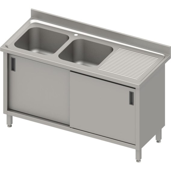 Stół ze zlewem 2-kom.(L),drzwi suwane 1600x600x850 mm, blat tłoczony,rant puszkowy 100x15x10