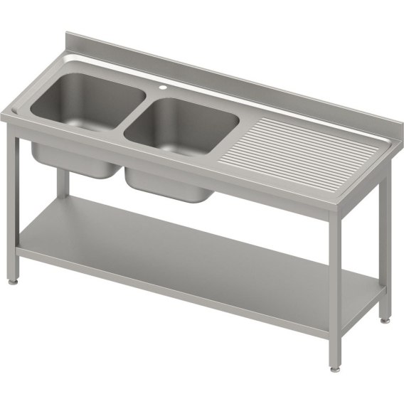 • Stół ze zlewem 2-kom.(L),z półką 1600x600x850 mm skręcany, blat tłoczony,rant puszkowy 100x15x10