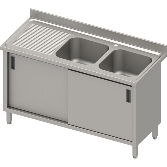 Stół ze zlewem 2-kom.(P),drzwi suwane 1700x600x850 mm, blat tłoczony,rant puszkowy 100x15x10