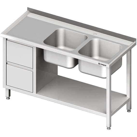 Stół ze zlewem 2-kom.(P), z blokiem dwóch szuflad i półką 1900x600x850 mm