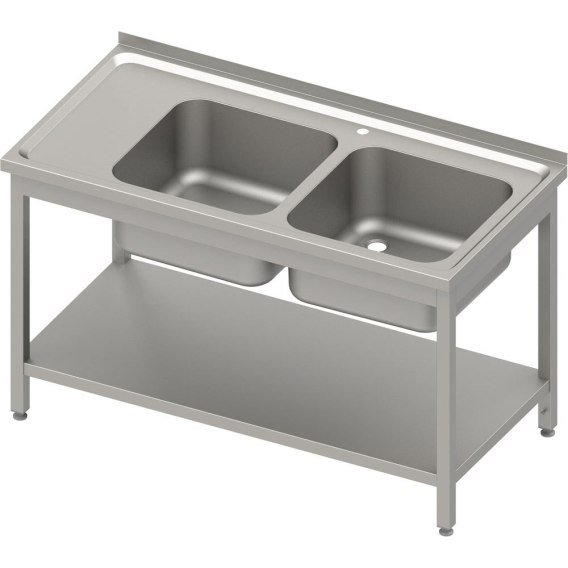 • Stół ze zlewem 2-kom.(P),z półką 1300x700x850 mm skręcany, blat tłoczony