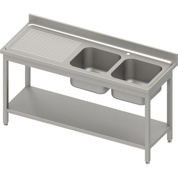 Stół ze zlewem 2-kom.(P),z półką 1800x700x850 mm skręcany, blat tłoczony,rant puszkowy 100x15x10