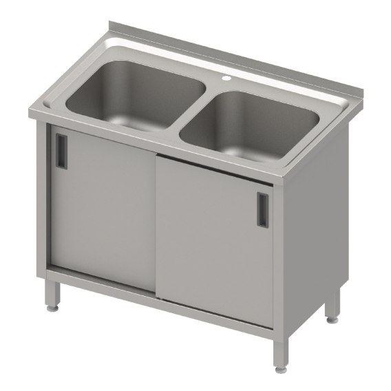 Stół ze zlewem 2-kom.,drzwi suwane blat tłoczony, 1000x600x850 mm Stalgast
